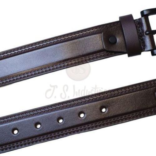 Men Brown Solid Leather Belt with Black Buckle