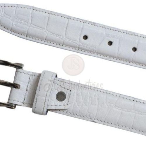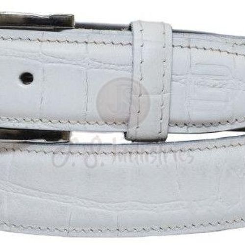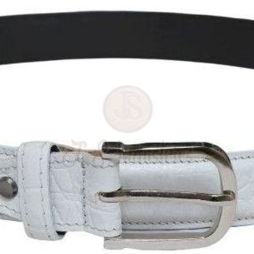 White Alligator Embossed Leather Belt with Metal Pin Buckle