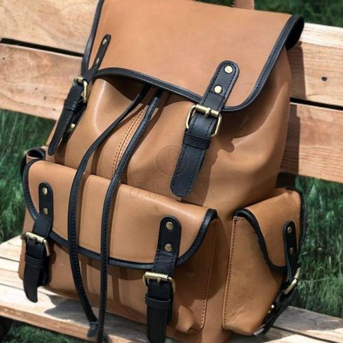 Brown PU Leather Flap Closure Backpack
